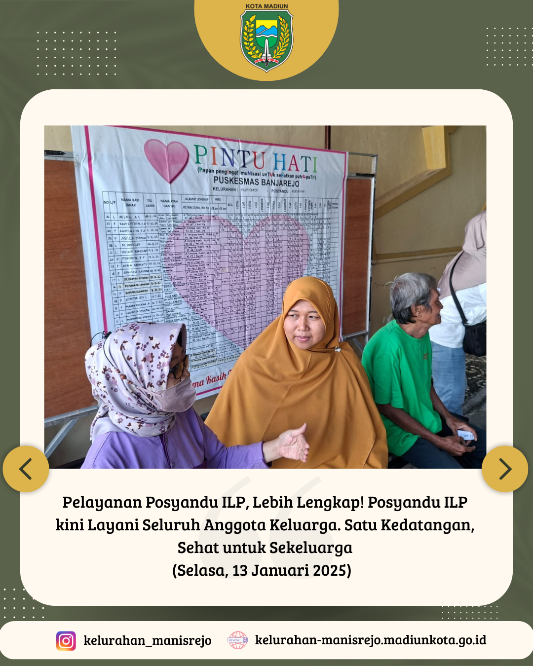 Adapun beberapa Kegiatan yang dilaksanakan ialah Wawancara Ekslusif Ketua KIM dengan Bhabinkamtibmas , Babinsa, Ketua PKK serta Lurah Manisrejo Kecamatan Taman Kota Madiun.